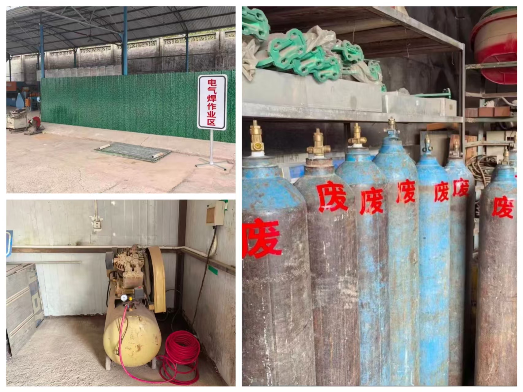 此次整改行動重點圍繞電氣焊作業(yè)、氣瓶管理及設(shè)備安全等方面展開。一是規(guī)范電氣焊作業(yè)管理,設(shè)立獨立作業(yè)區(qū),實現(xiàn)與其他生產(chǎn)區(qū)域的物理隔離,有效降低火災(zāi)、觸電等安全風(fēng)險;二是強化氣瓶分類管理,對報廢氣瓶統(tǒng)一張貼“廢”字標(biāo)識,嚴(yán)格區(qū)分存放,杜絕誤用隱患;三是更新老舊設(shè)備,更換空壓機等設(shè)備的輸送軟管,采用優(yōu)質(zhì)耐壓材料,確保設(shè)備運行安全可靠。